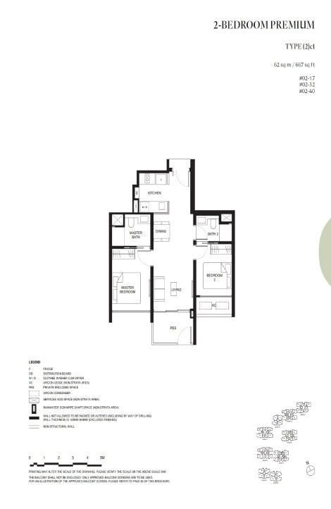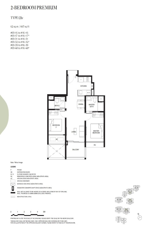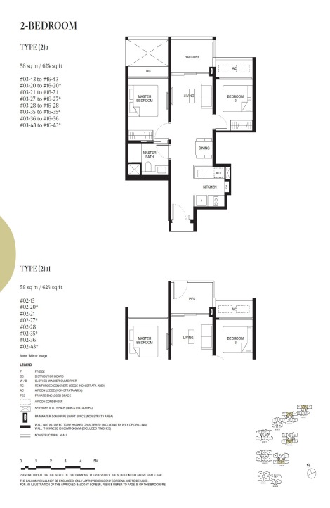 Tengah Garden Residences 2 bedroom size ranges from 624 to 753 sqft.
