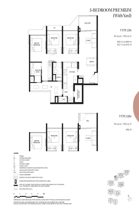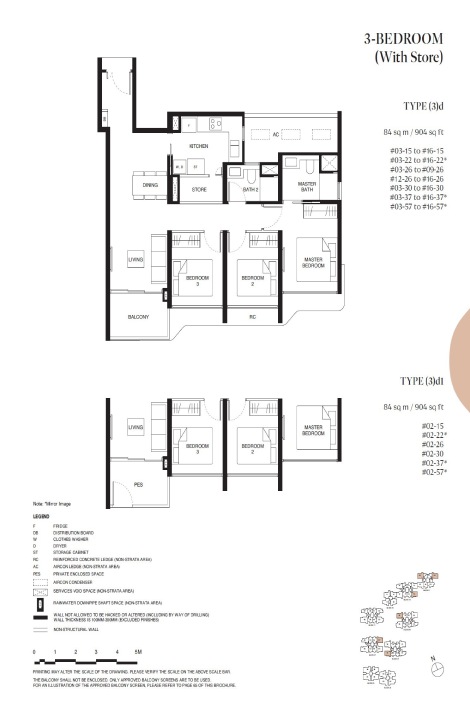 Tengah Garden Residences 3 bedroom size ranges from 797 to 1,033 sqft.