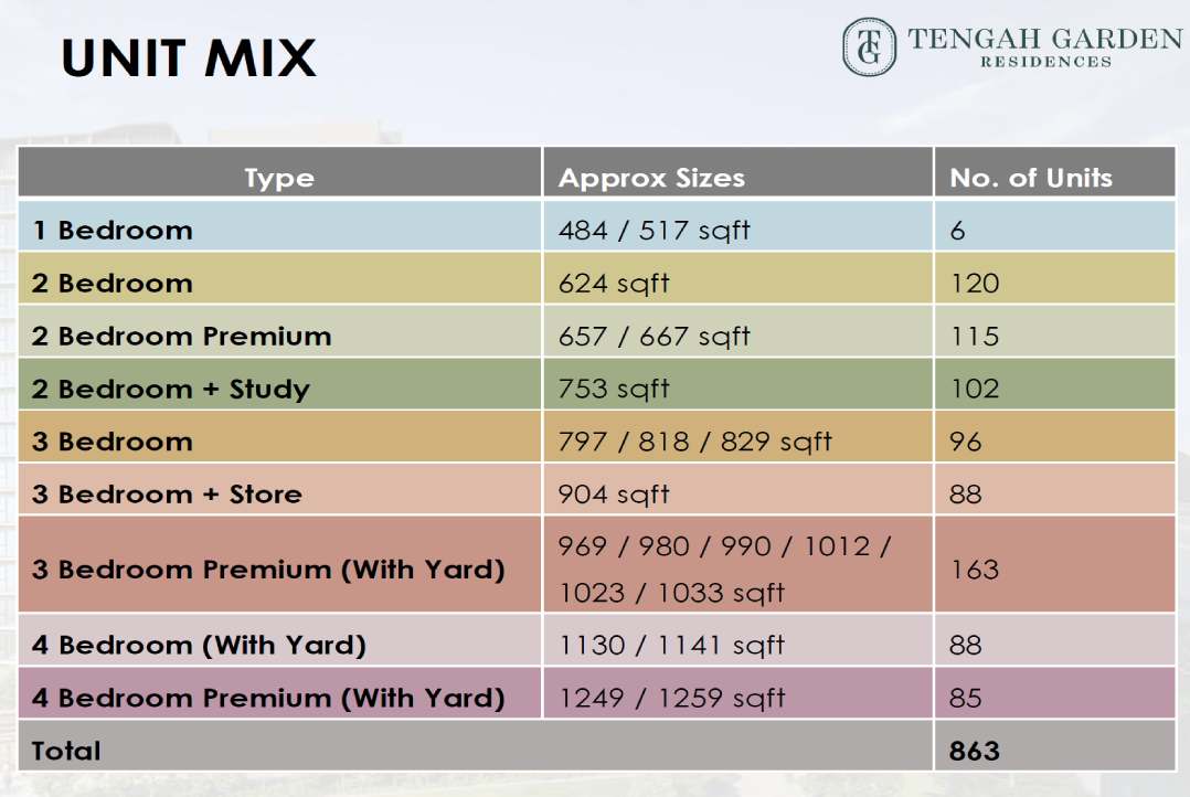 Tengah Garden Residences has an estimated total of 863 residential units.